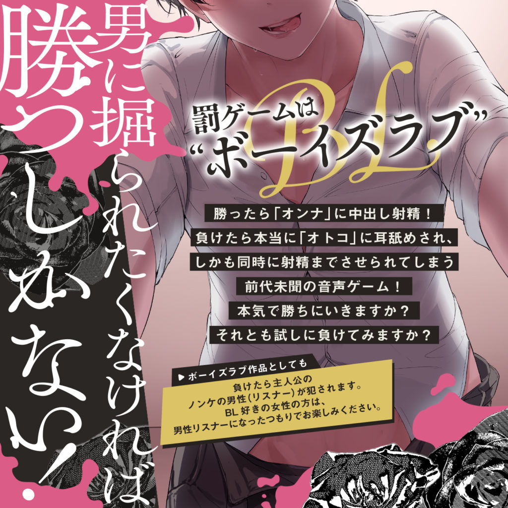 幼馴染でBL好きオタクの彩花が、シコシコボイスゲームという遊びを提案してきた。彩花に触ってもらえるのは嬉しいが、罰ゲームはなんと、自分がゲイの男にお尻を貸し、アナルで中出しされてしまう。さすがに無理だ。しかし、断ろうと思ったけど、既に彩花からの手コキ練習は始まっていて、ゲームに誘われながら「動かしては止め、動かしては止め」を繰り返される。徐々に収まりがつかなくなっていくぼくのチンポ。そしてつい「うん、やろう」と返事をしてしまった…。